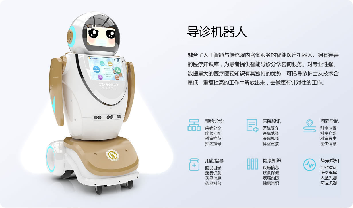 患者可以語音問詢院內業務辦理方法、生活信息、業務對應科室、政策信息等常見問題,支持人臉識別、迎賓接待等特色功能,可根據不同患者類型進行心理安撫。