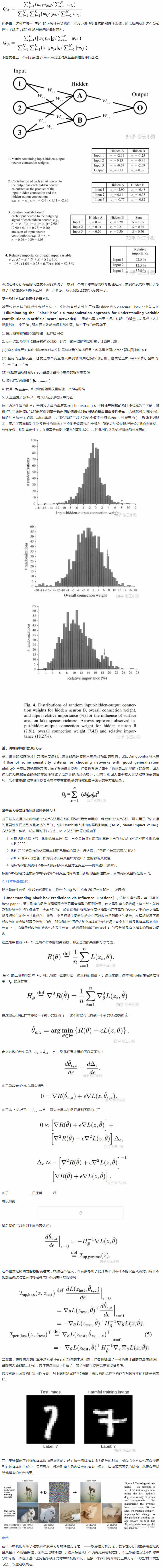 基于連接權的方法中比較有代表性的工作是Garson等人1991年在《Interpreting neural network connection weights》提出的方法,這種來自于“遠古時期”的智慧相對來說就要簡單粗暴一點。輸入變量 對輸出變量 的影響程度為:
