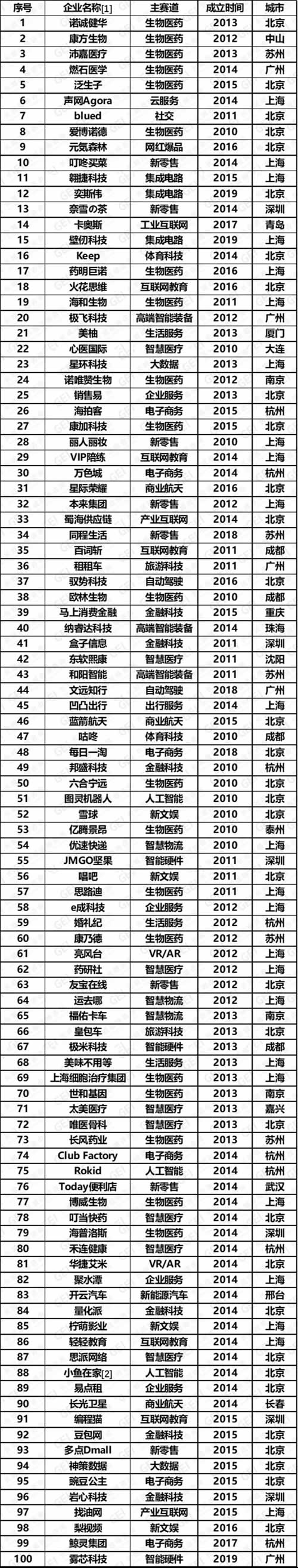 字節跳動,螞蟻金服,滴滴出行,快手,陸金所,菜鳥網絡,京東數科,微眾銀行,馬上金融,商湯科技,京東物流,曠視科技,優必選