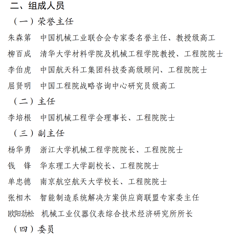 為落實《“十四五”智能制造發展規劃》,加強智能制造前瞻性和戰略性問題研究,提升研究水平和支撐能力,決定成立國家制造強國建設戰略咨詢委員會智能制造專家委員會,主要職責和人員名單詳見附件。