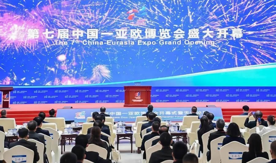 第七屆中國—亞歐博覽會開幕式暨天山論壇9月19日下午在新疆國際會展中心舉行。 開幕式上,首先宣讀了國家主席致第七屆中國—亞歐博覽會的賀信。政治局委員、國務院副總理胡春華宣讀。 本屆博覽會主賓國哈薩克斯坦總統托卡耶夫、主賓國匈牙利總理歐爾班,巴基斯坦總理夏巴茲、吉爾吉斯斯坦D一副總理卡瑟馬利耶夫、塔吉克斯坦D一副總理賽義德、蒙古國政府秘書長阿瑪爾巴雅斯格楞,東盟秘書長林玉輝、上海合作組織秘書長張明發表視頻演講。