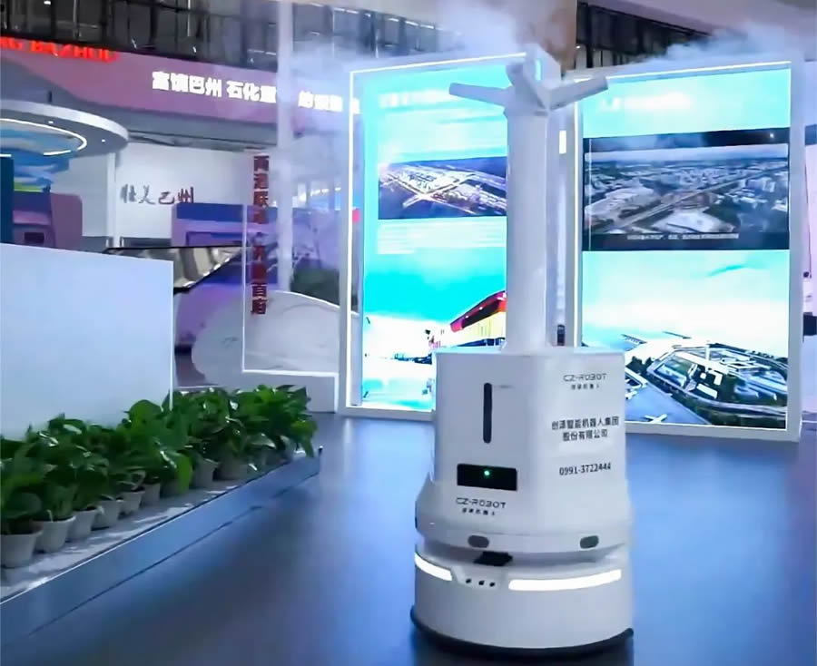 本屆博覽會由商務部、外交部、中國貿促會、新疆維吾爾自治區人民政府等共同主辦。以“共商、共建、共享、合作向未來”為主題,采取線上線下相結合的方式。來自亞洲、歐洲、非洲、美洲的32個國家(地區)的3600家企業參展參會。本屆博覽會展覽面積4萬平方米,設置投資合作、國際及港澳臺和商品貿易三大展區。 創澤集團受邀攜旗下智能服務機器人、智能消毒機器人等產品亮相,與大家從不同角度針對機器人行業應用進行面對面體驗交流。面向新零售、行政、公共服務、餐廳、金融、教育、醫療、旅游、酒店各大L域,提供30+成熟的場景落地解決方案。 在展會期間,創澤集團智能服務機器人和智能消毒機器人一經亮相就吸引了不少媒體采訪。記者們看到正在工作的消毒機器人后興趣十足,向工作人員深入了解了它的消殺能力以及內在科技技術。智能消毒機器人采用超聲波霧化技術,優越的滲透擴散能力,自主知識產權霧化系統,出霧量大殺毒效果快,環形立體消毒,霧化速度達3500g/h,可實現全場景的廣域無死角消殺工作。配備的自動駕駛系統,在工作過程中,可自主規劃路徑,自動躲避障礙物,即便在人流量較大的商場、地鐵、醫院等場所,也能夠輕松避讓人群,完成消殺作業。