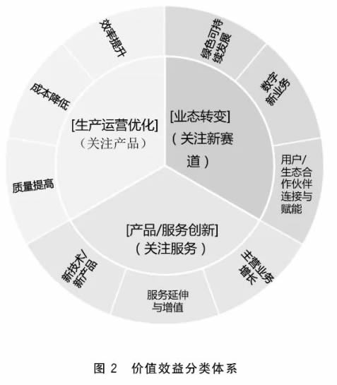 a) 生產(chǎn)運(yùn)營(yíng)優(yōu)化,重點(diǎn)關(guān)注傳統(tǒng)產(chǎn)品生產(chǎn)與交付,主要為基于傳統(tǒng)存量業(yè)務(wù),聚焦內(nèi)部?jī)r(jià)值鏈開(kāi)展價(jià)值創(chuàng)造和傳遞活動(dòng),通過(guò)傳統(tǒng)產(chǎn)品規(guī)模化生產(chǎn)與交易,獲取效率提升、成本降低、質(zhì)量提G等方面價(jià)值效益∶
